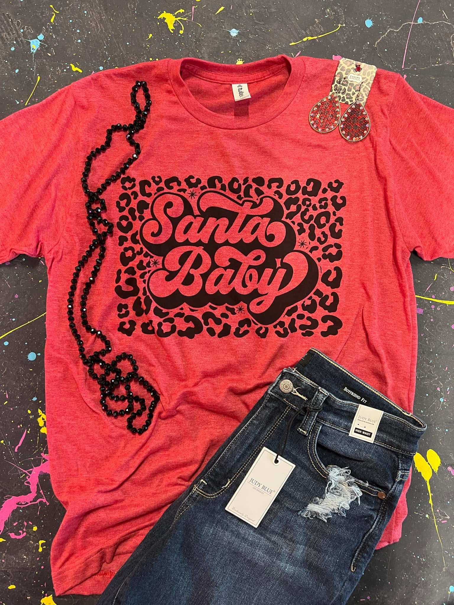 Santa Baby Cheetah Tee - ADULT SMALL SOFT is backordered and will ship as soon as it is back in stock.
