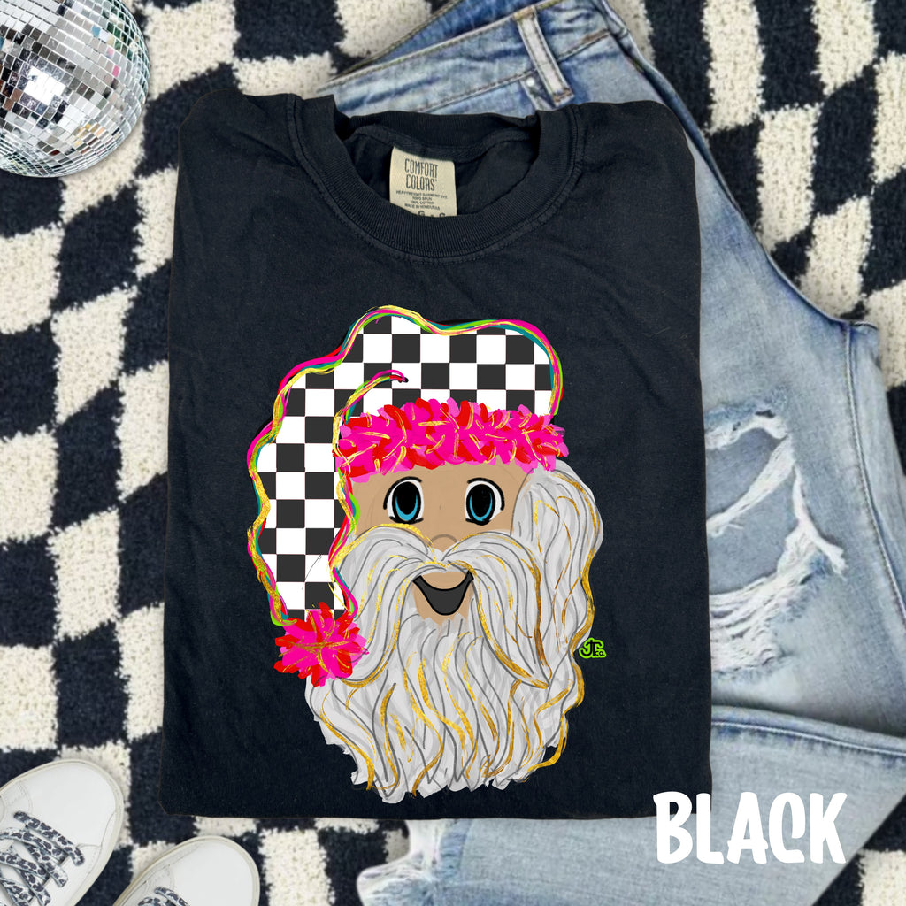 Checkered Santa Tee - Small is backordered and will ship as soon as it is back in stock.