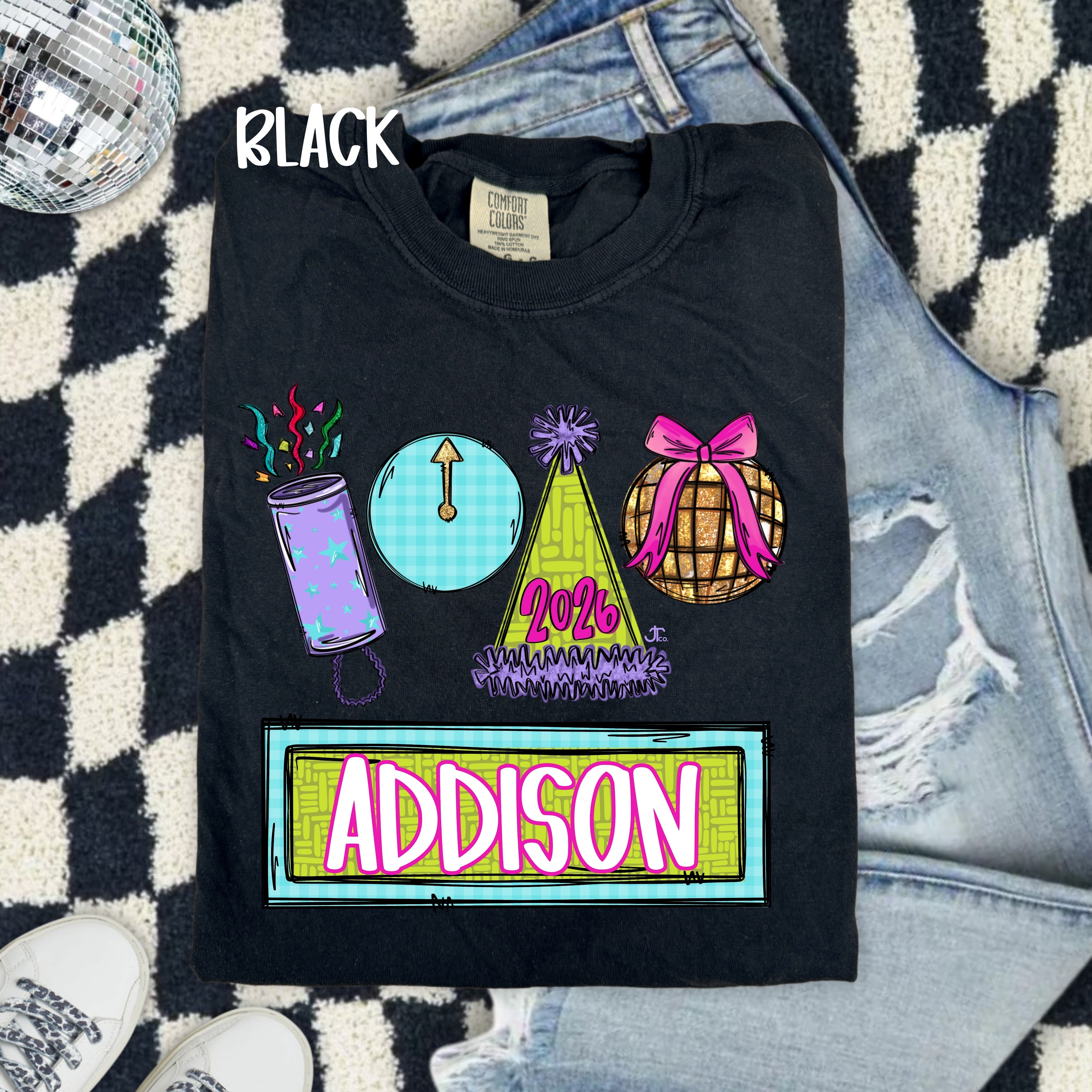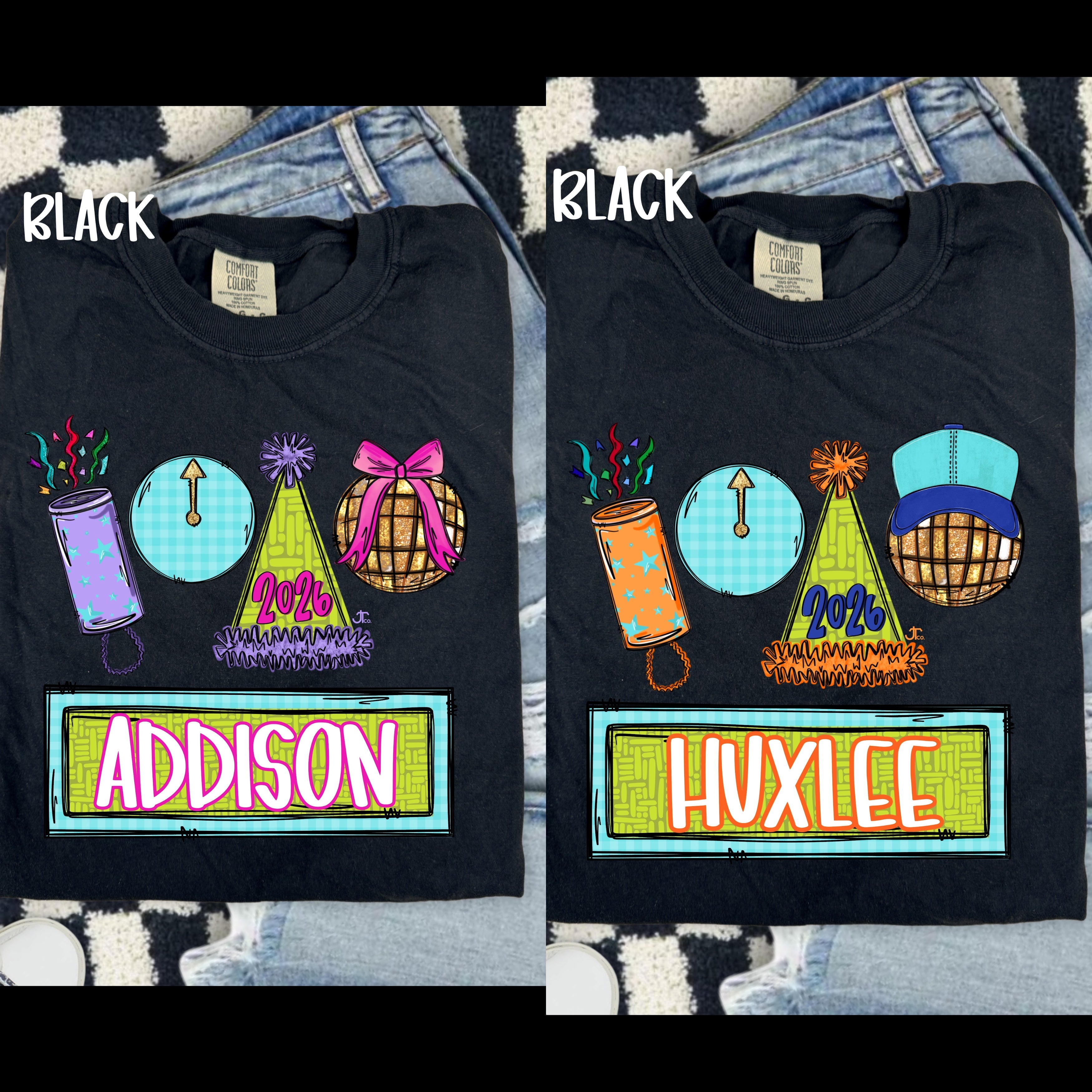 Party Popper 2026 Custom Name Plate Tees - Small is backordered and will ship as soon as it is back in stock.